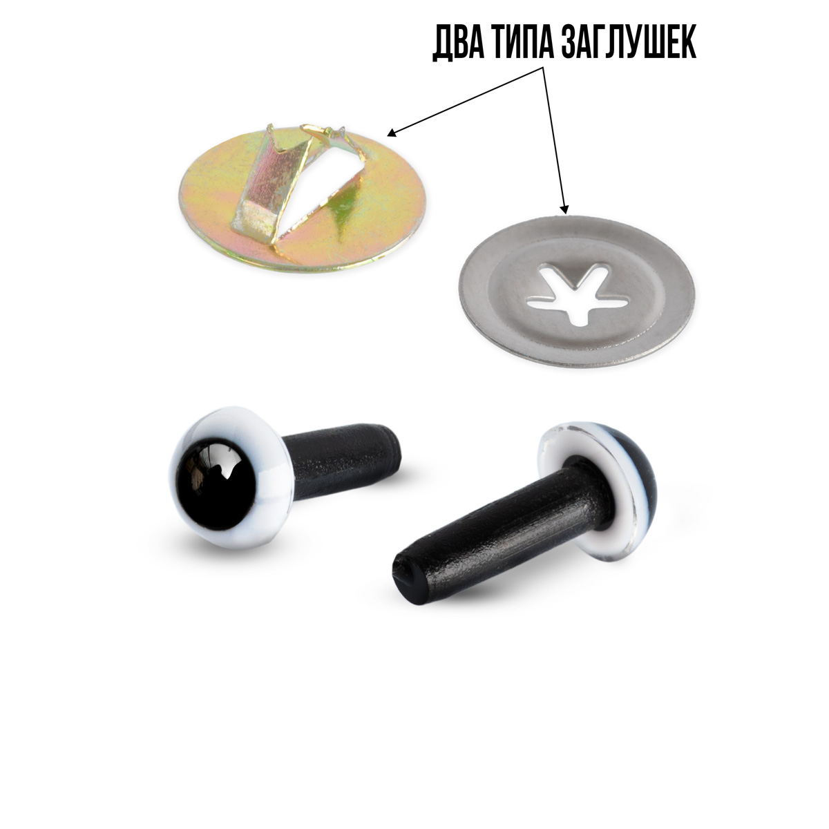 Крепление глазок на материал обеспечивается шайбой, которая фиксирует "ножку" глазика с обратной стороны ткани.