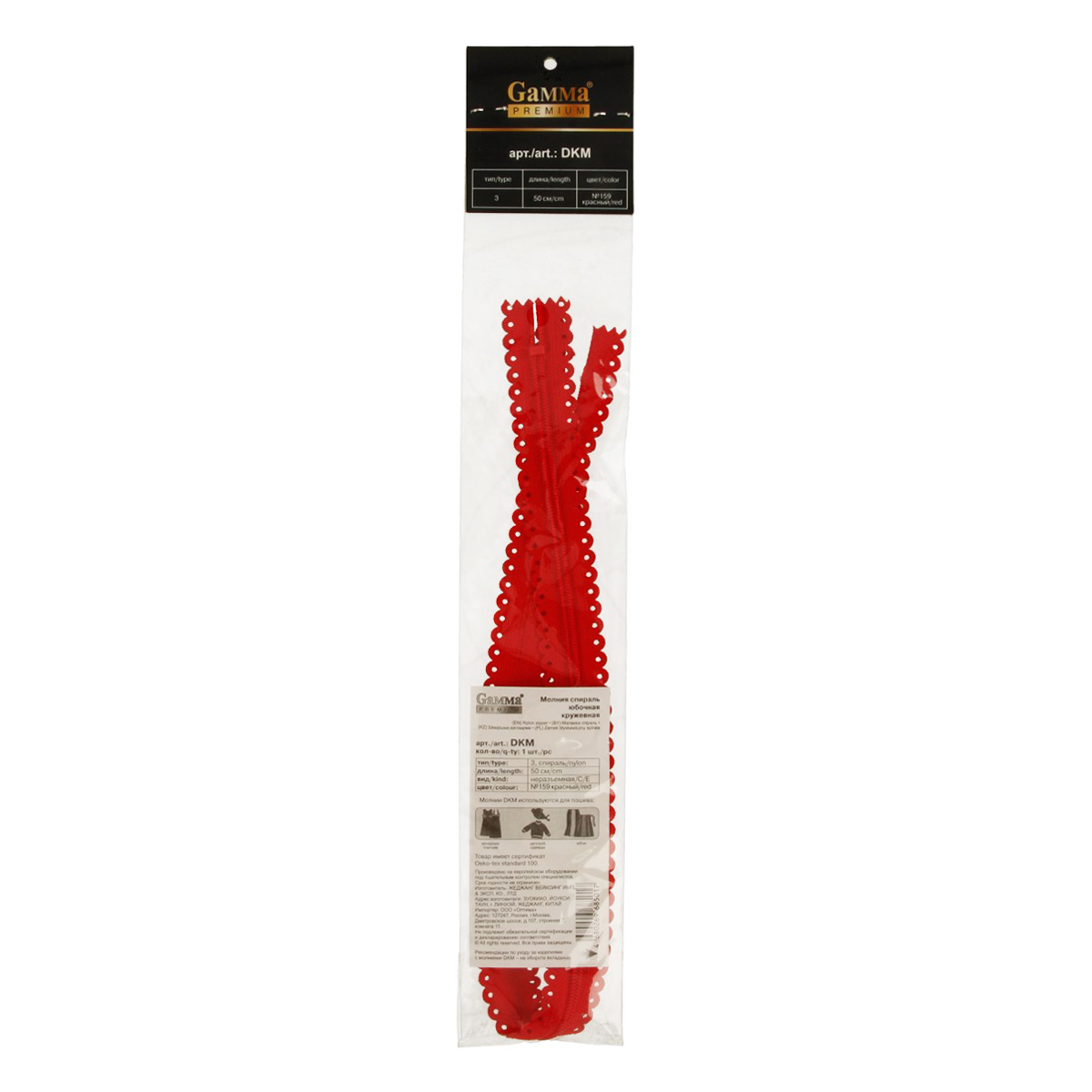 Молния Спираль декоративная "GAMMA" Premium DKM 50 см тип 3 неразъёмная однозамковая №159 красный