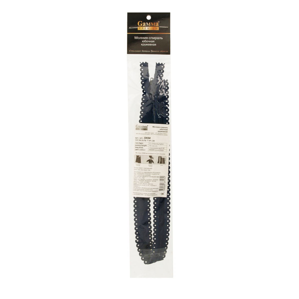 Молния Спираль декоративная GAMMA Premium DKM 50 см тип 3 неразъёмная однозамковая №220 синий Фото 5.