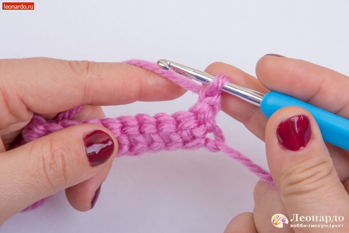 1. Вводим крючок в петлю, захватываем рабочую нить. Выводим крючком петлю. Таким образом, делаем три петли.