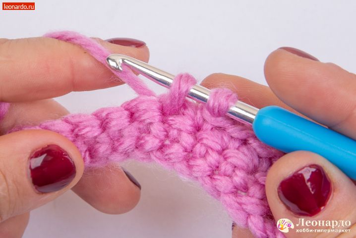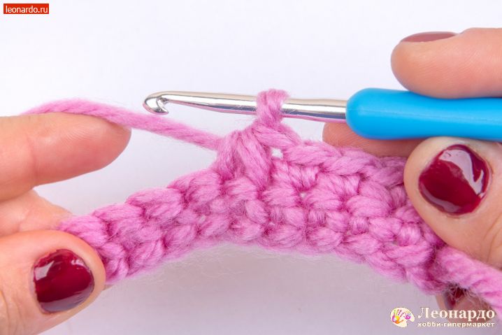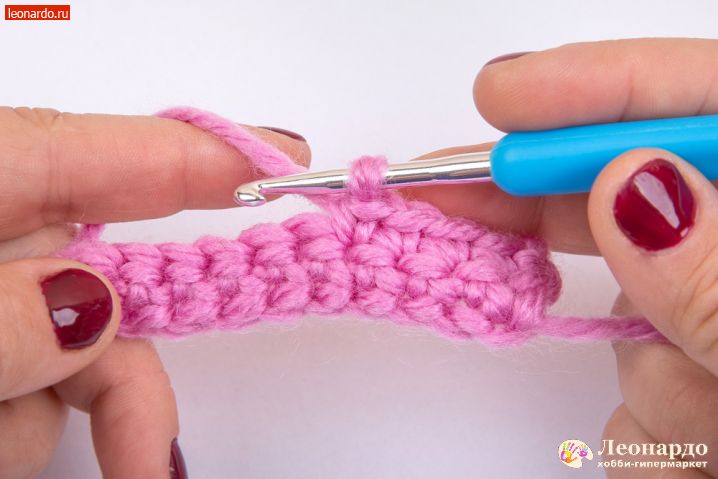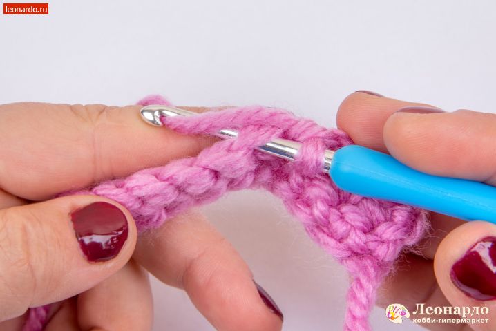 3. Вводим крючок в следующую петельку, захватываем рабочую нить.