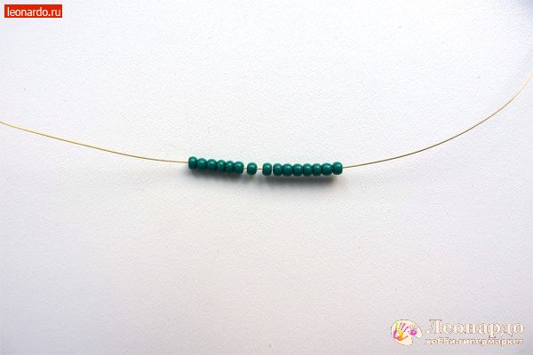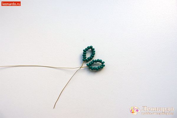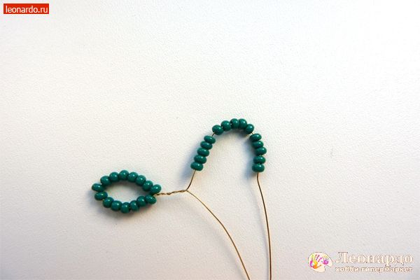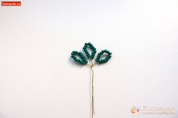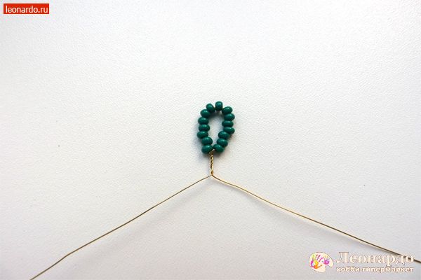 4. Набираем на один из концов проволоки еще 15 бисерин. Формируем петлю на высоте 0,5 основания проволоки.