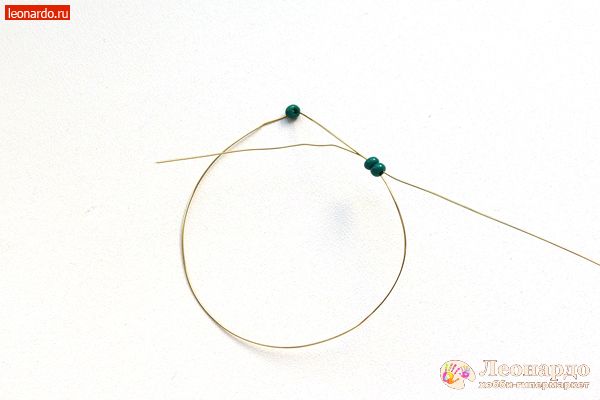 2. Пропускаем один конец проволоки через две бисерины.