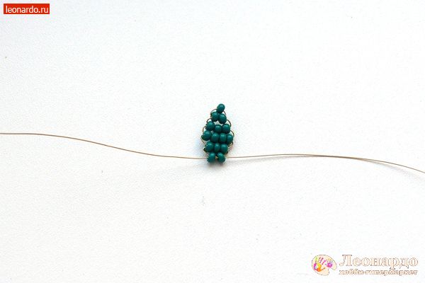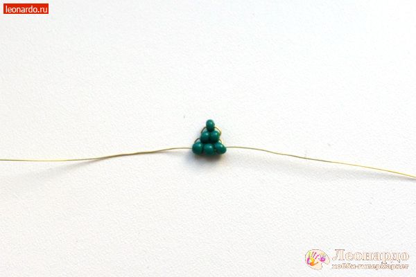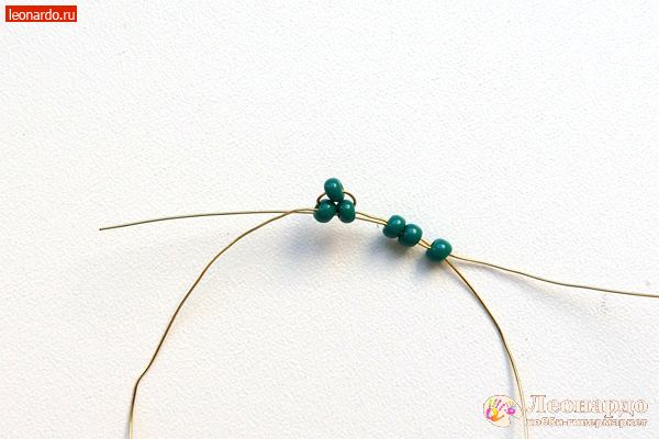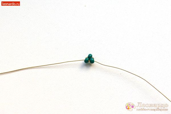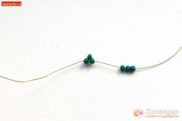 3. Набираем на длинный конец проволоки еще 3 бисерины.