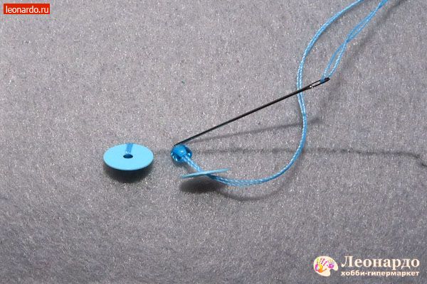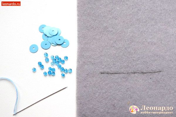 1. Выводим иглу с изнаночной стороны ткани. Нанизываем пайетку и бисерину.
