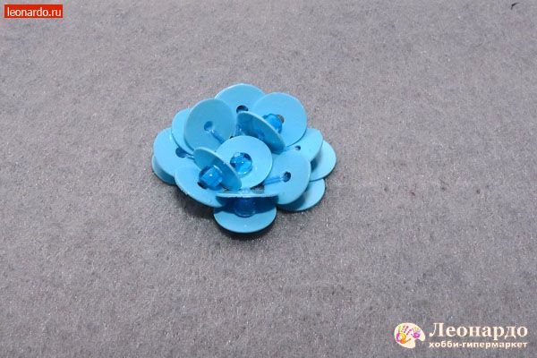 6. Если добавлять по очереди: пайетку, бисерину, пайетку и пришивать все по кругу, то с помощью объемного пришивания можно делать цветочки.