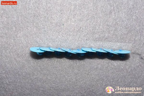 5. Так можно пришить пайетки по всей длине линии, если хотим получить объем. Угол пайетки можно регулировать размером бисера.
