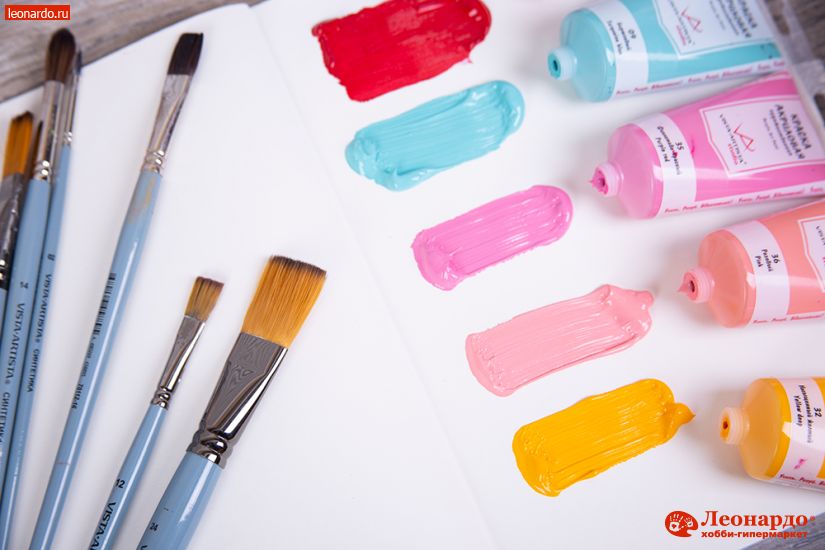 Самые распространенные кисти для акриловых красок – синтетические. Синтетика может быть разной. Мягкие синтетические кисти используются для декоративных акриловых красок и для тонкослойной художественной живописи. Они удерживают много краски, при этом не оставляют следов и хорошо держат мазок.