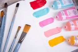 Акриловые краски по своим свойствам вязкие и тяжелые. Для их разведения используют специальные разбавители, реже воду, поскольку она ухудшает их адгезию. Поэтому кисти для таких красок должны быть очень упругие. Есть несколько видов акрила – декоративный (жидкий) и художественный (густой и пастозный). В первом случае кисть должна быть не только упругой, чтобы хорошо держать мазок, но и мягкой, чтобы не оставались следы кисти. Это особенно важно, когда выполняется большая однотонная заливка цветом. Для пастозной живописи художественным акрилом нужны упругие и жесткие кисти, которые придают фактуру мазку.