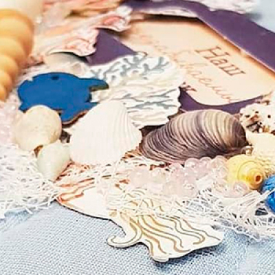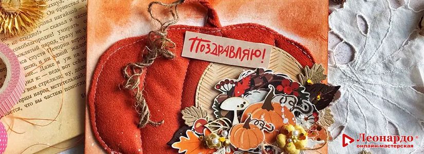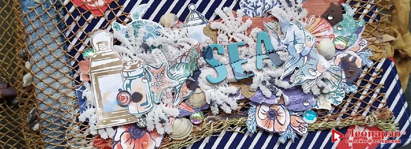 Самые главные элементы в альбоме – фотографии. Их можно вставить в уголки, приклеить, закрепить с помощью шнура и брадса. Внутри альбома декор лучше использовать плоский, снаружи – объёмный, например, цветы, фигурки, стекляшки. Далее выбираем обложку. Она может быть тканевой или бумажной, на застежке или с ленточкой. В «Леонардо» есть уже специальные заготовки для альбомов. Всё, что вам остаётся, это красиво скомпоновать элементы.