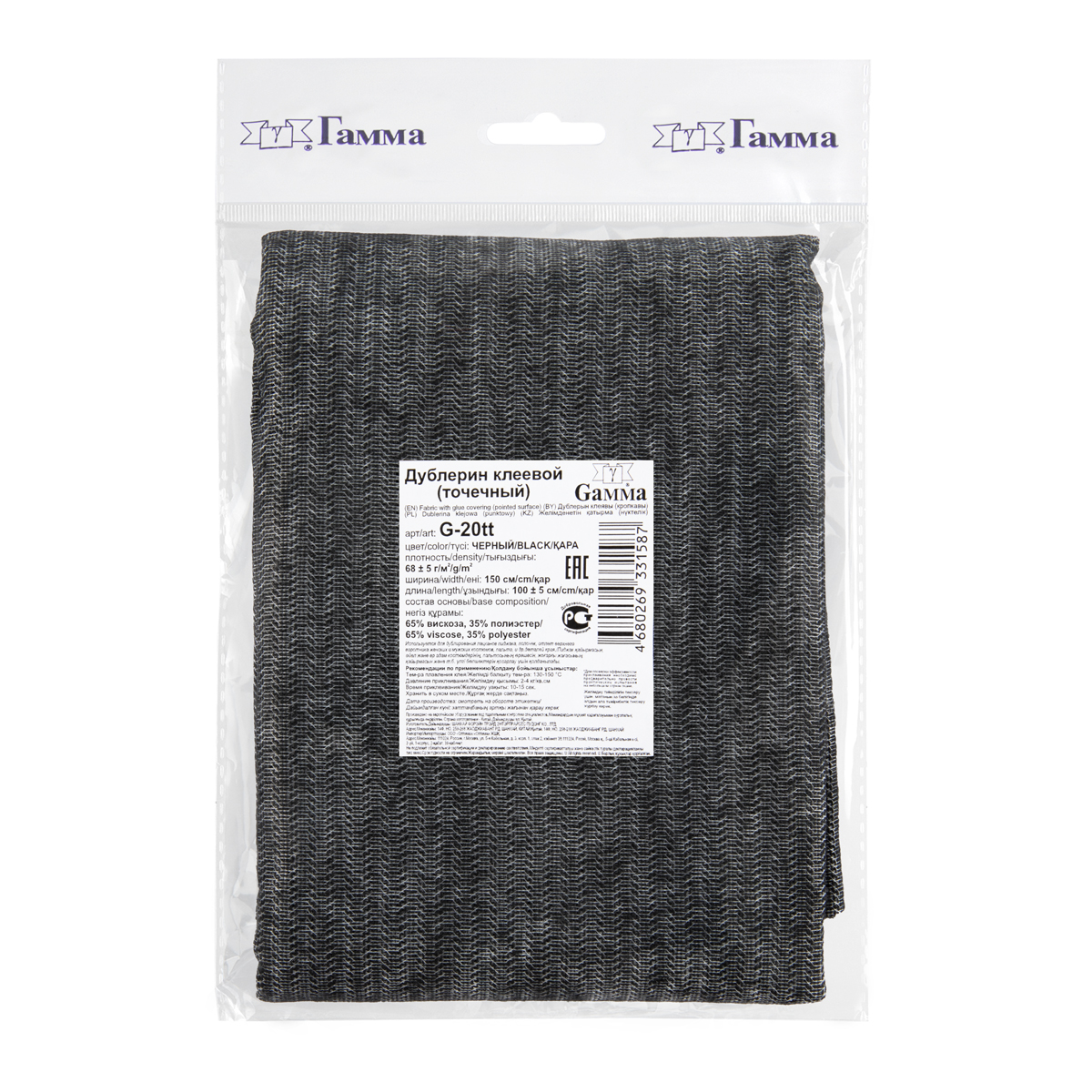 Дублерин G-20tt тканый точечный 68 г/кв.м ± 5 150 см х 100 см черный