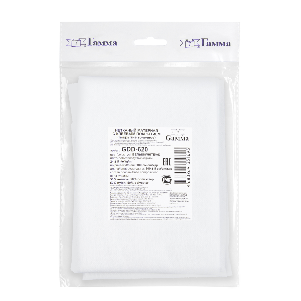 Нетканный материал (флизелин) "Гамма" клеевой точечный GDD-620 24 г/кв.м ± 5 100 см х 100 см белый