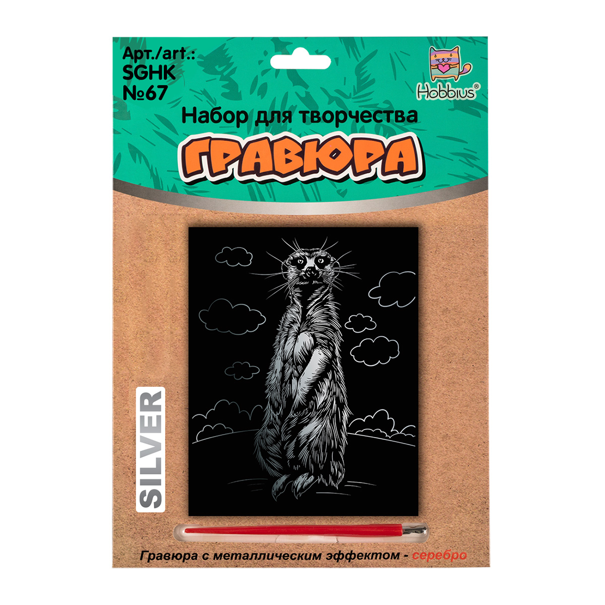 Hobbius SGHK Набор для творчества Гравюра 20 x 25.5 см №67 Сурикат (серебро) Фото 1.