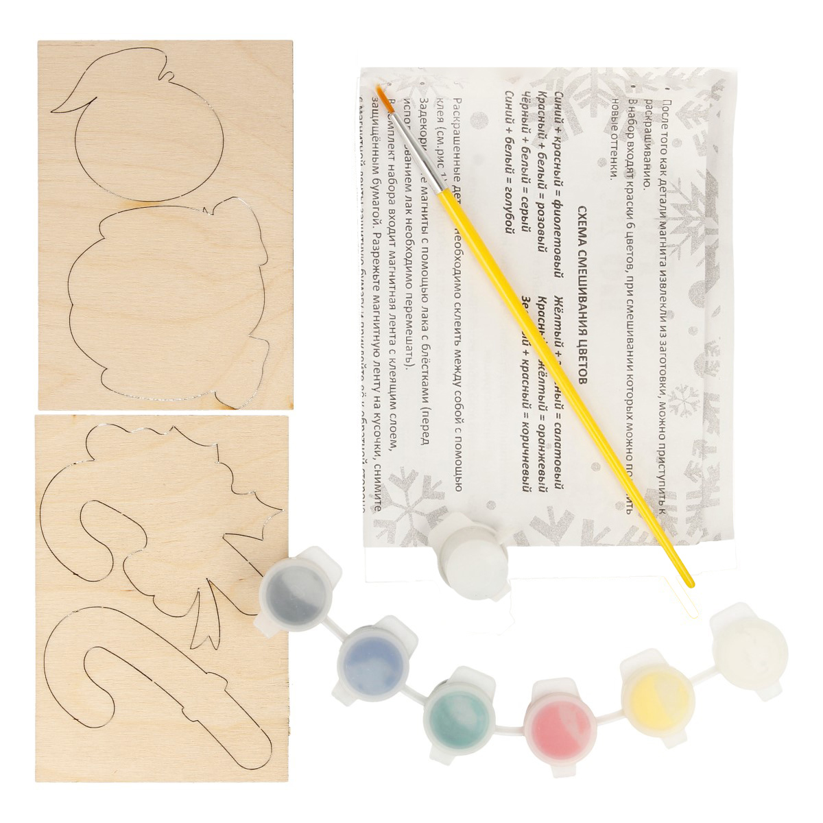 Комплектация: деревянные заготовки, краски, кисть, магнитная лента, инструкция.