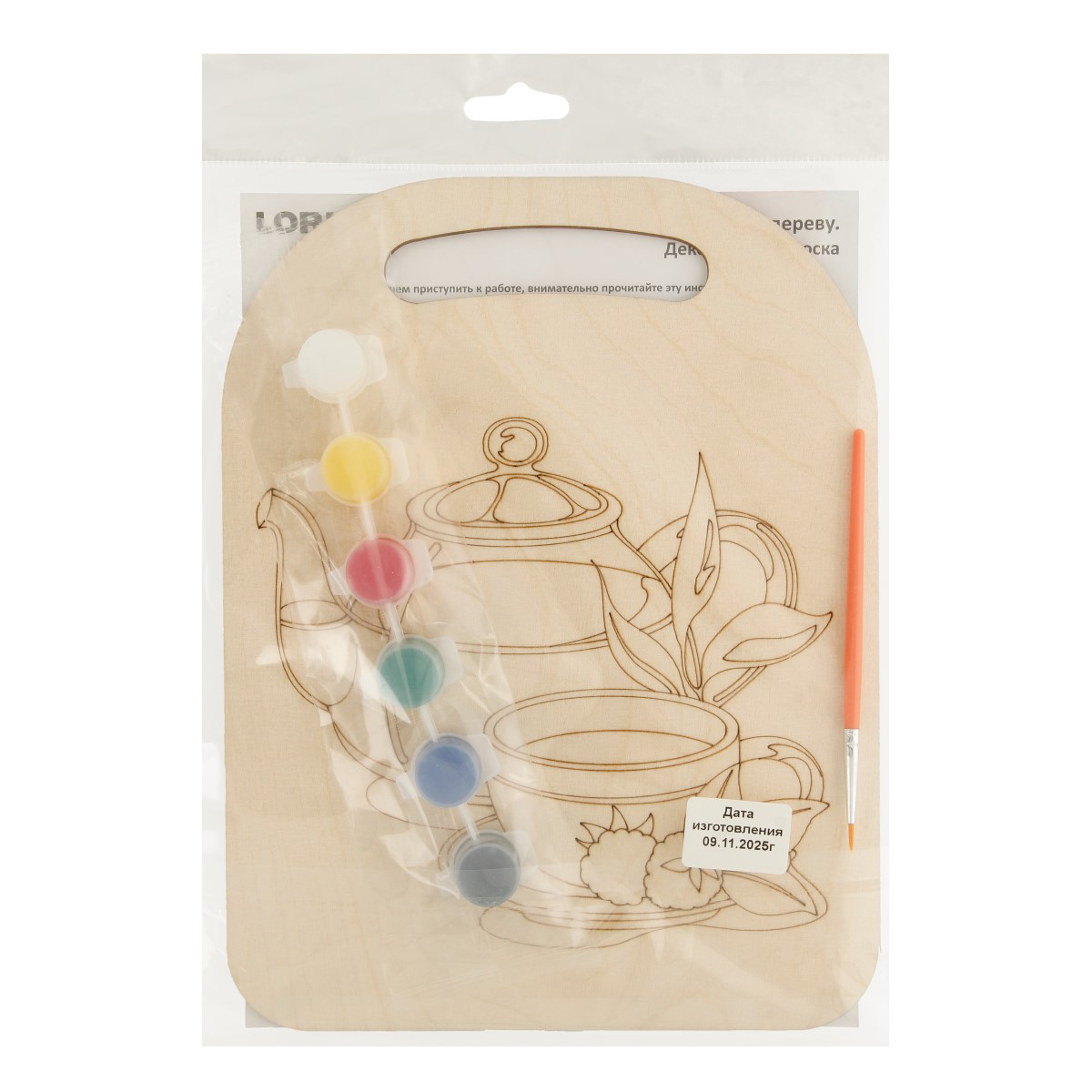 Набор предназначен для изготовления доска-сувенира, путем раскрашивания деревянной заготовки акриловыми красками.