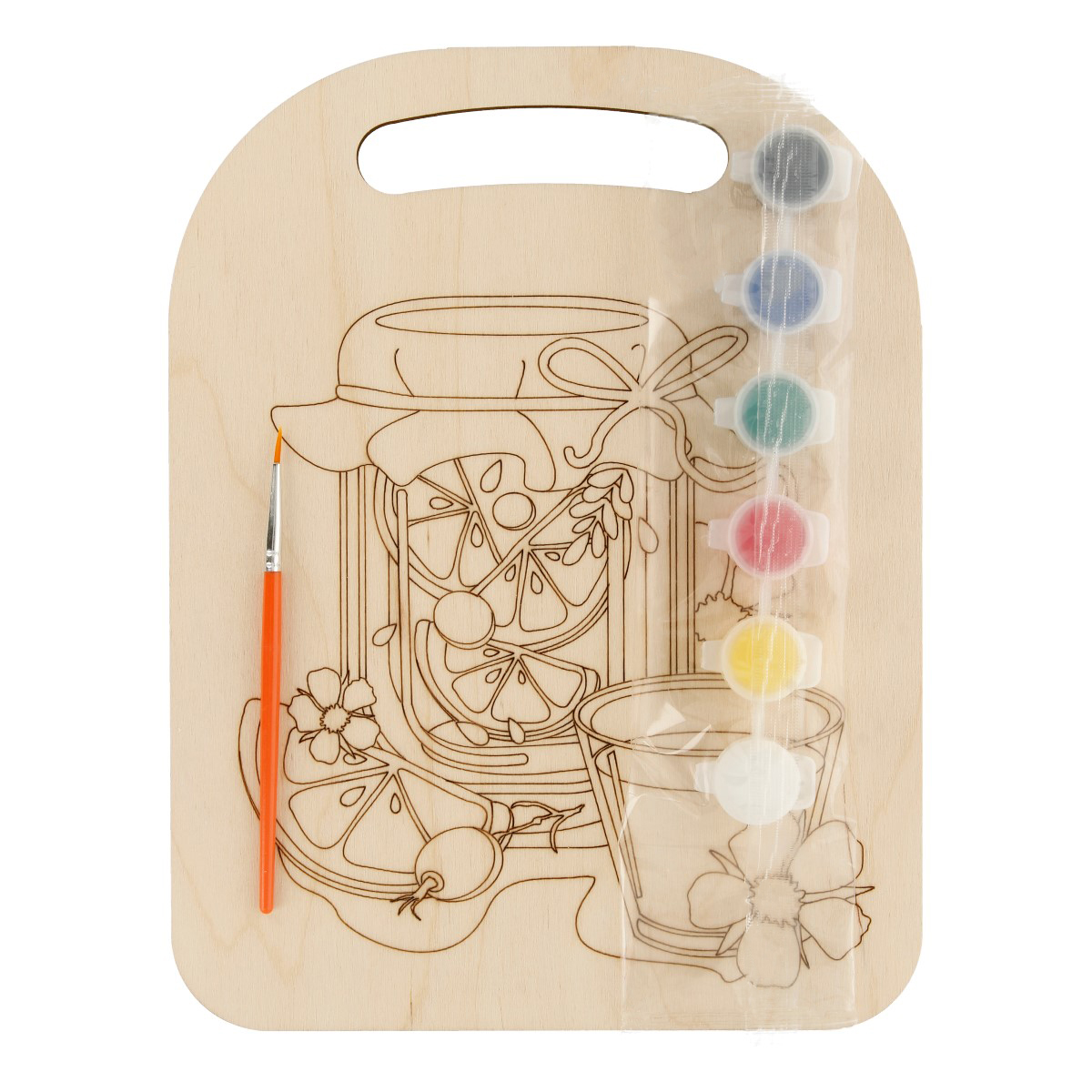 Набор предназначен для изготовления доска-сувенира, путем раскрашивания деревянной заготовки акриловыми красками.