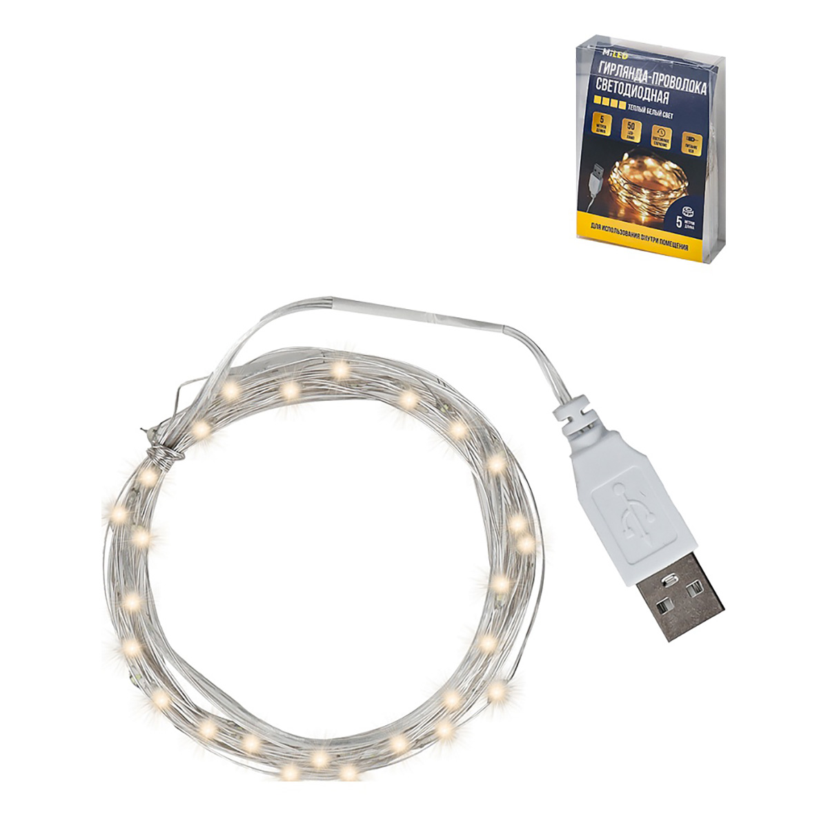 MILAND Гирлянда-проволока 500 см тёплый белый свет НУ-3019 Фото 1.
