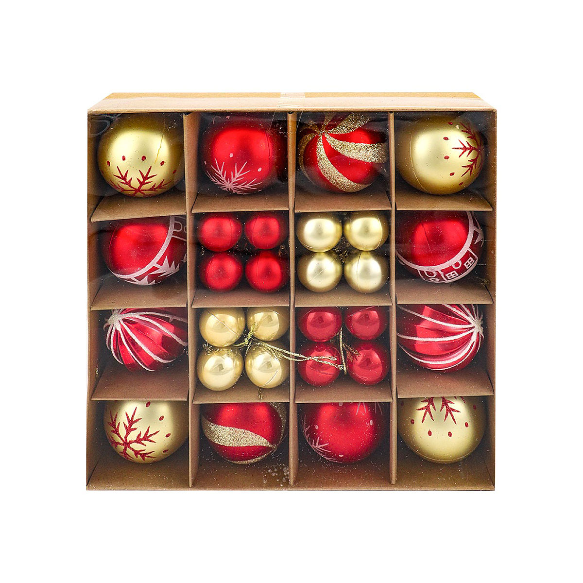 Красивые ёлочные шарики — главное украшение новогоднего дерева. Чтобы декорировать ёлочку модно и элегантно, подвески на ней должны сочетаться между собой по цветовой гамме. Наш набор новогодних шаров поможет со вкусом нарядить лесную красавицу и украсить интерьер в едином стиле. Также набор можно преподнести в качестве подарка на Новый год друзьям, родителям и коллегам. Набор пластиковых шаров будет радовать долгие годы. Цвет: красный и золотой. В наборе 32 шт. по 3 см, 12 шт. по 6 см.