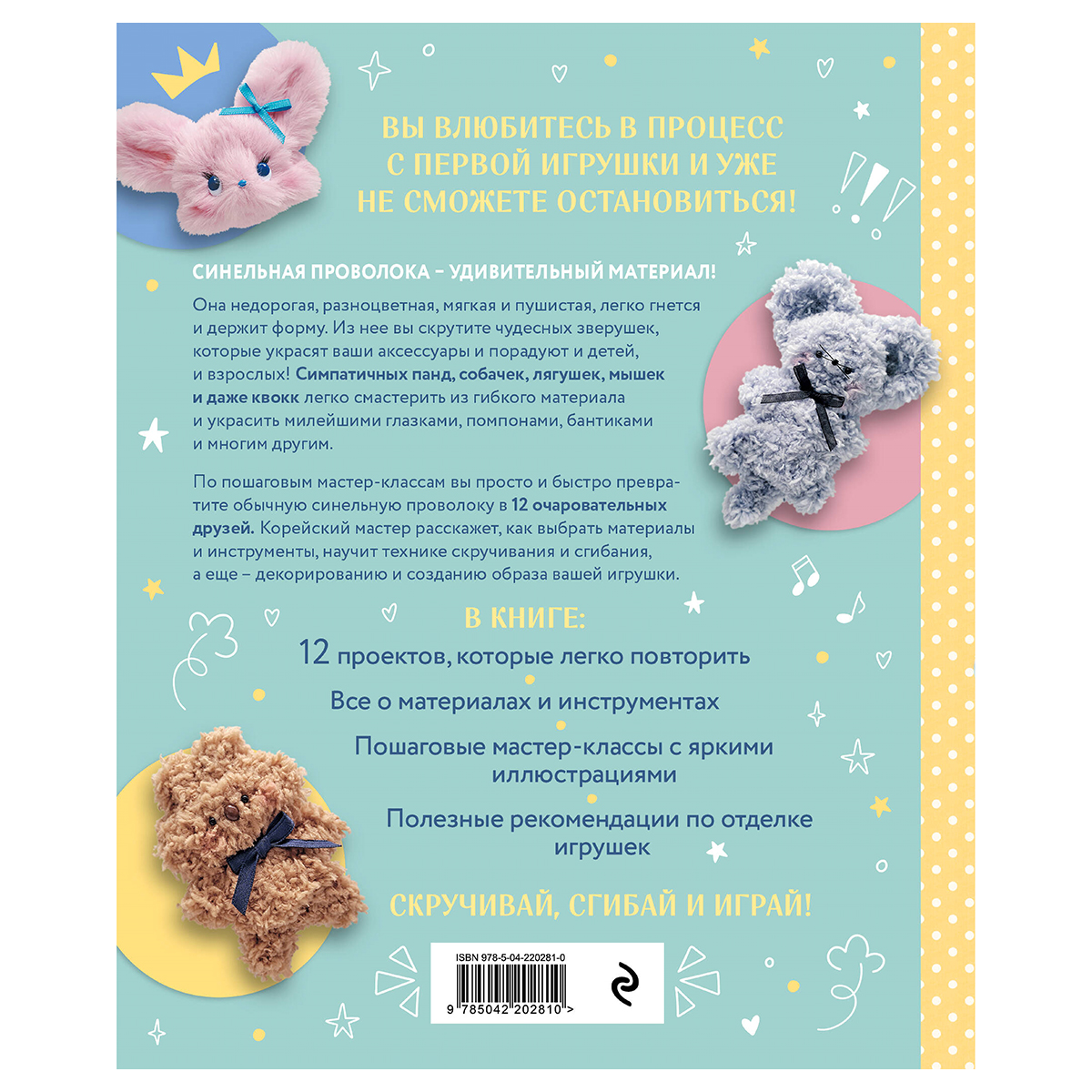 Синельная проволока - мягкий и пушистый материал, который легко гнется и держит форму! С ее помощью можно сделать чудесных зверушек и украсить ими любые аксессуары. Вас ждут симпатичные панды, собачки, лягушки, мышки и даже квокка! Все 12 персонажей легко смастерить, следуя пошаговым инструкциям и советам автора. Корейский мастер расскажет, как выбрать материалы и инструменты, научит технике скручивания и сгибания, а еще – декорированию и созданию образа вашей игрушки. Идеальное хобби для детей и взрослых!