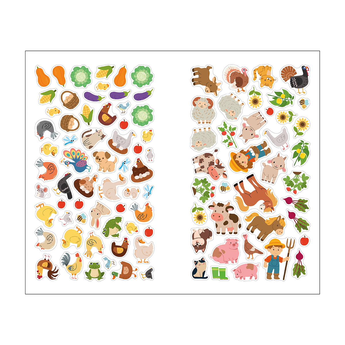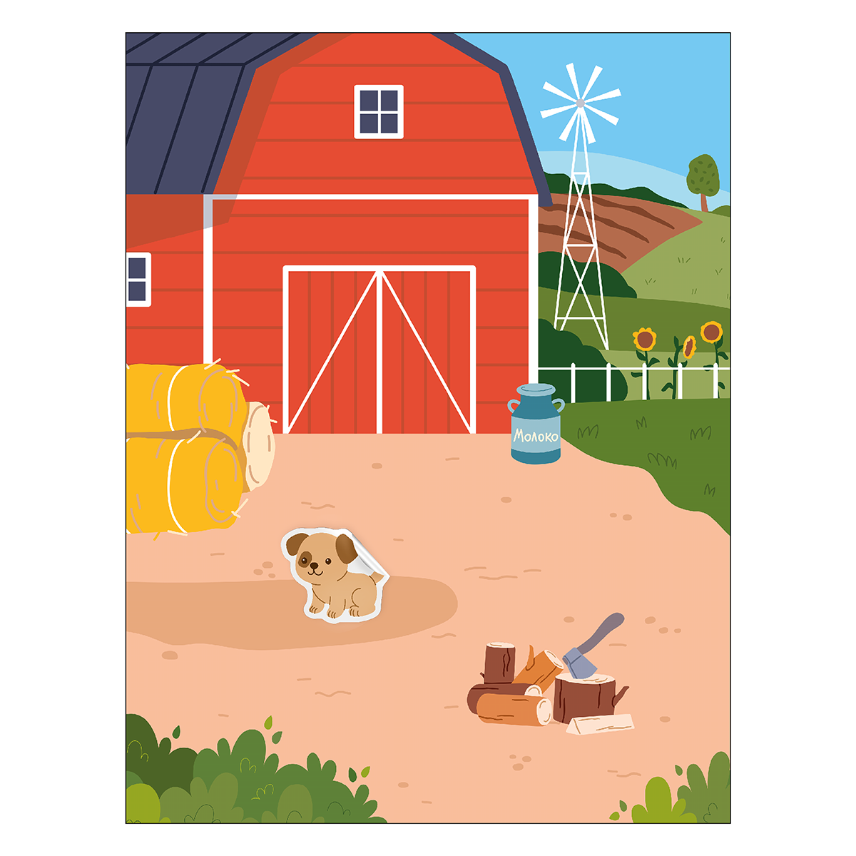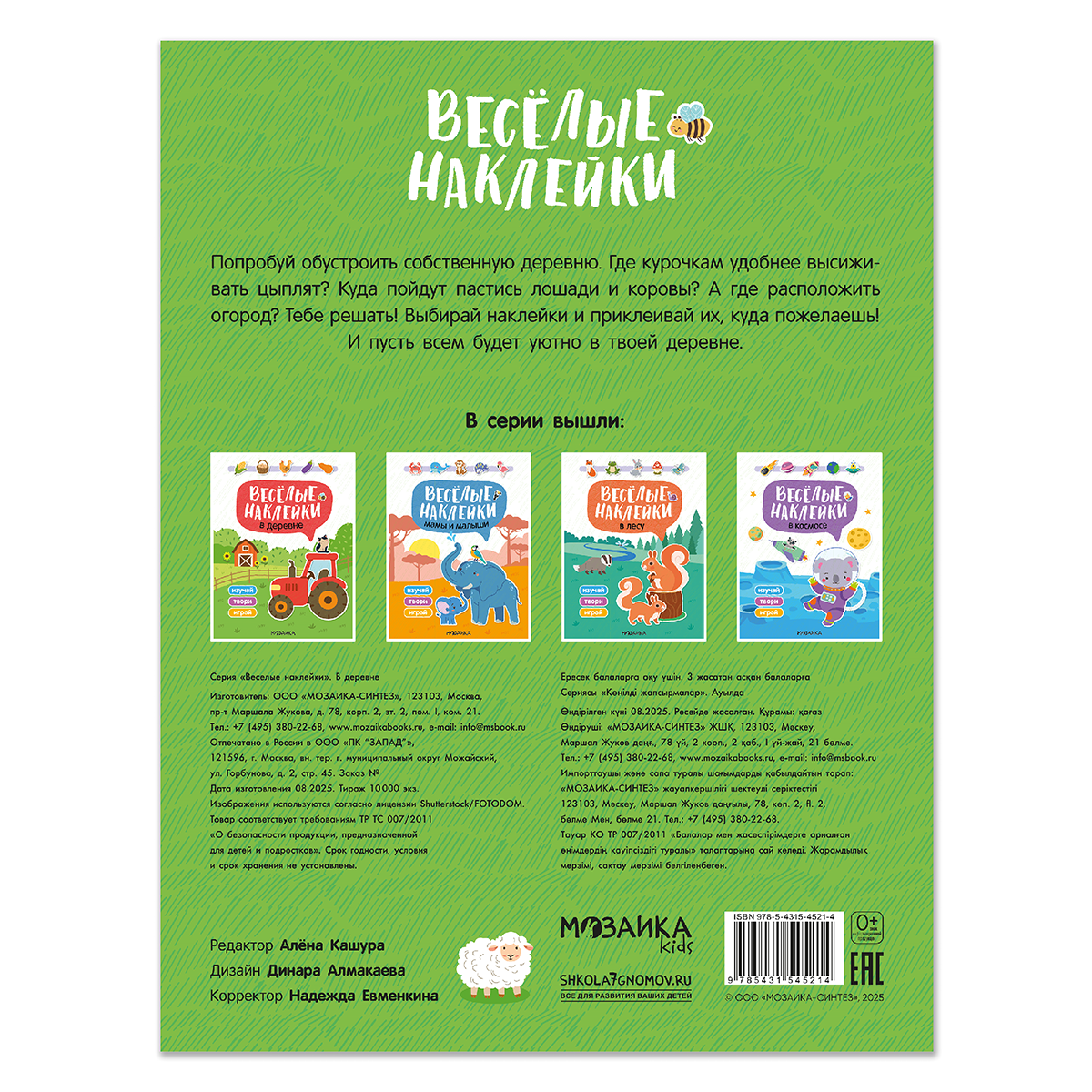 В деревне [Веселые наклейки], книга с наклейками Книга «В деревне» серии «Веселые наклейки» позволит ребенку самостоятельно, без помощи родителей, весело провести время и одновременно позаниматься. Играя с наклейками, ребенок пополнит словарный запас, разовьет фантазию и память, счет и творческое мышление. Наклейки животных и птиц, фруктов и овощей, садового инвентаря и техники можно размещать, где угодно. Они подойдут и для первого знакомства с наклейками, и для малышей постарше.