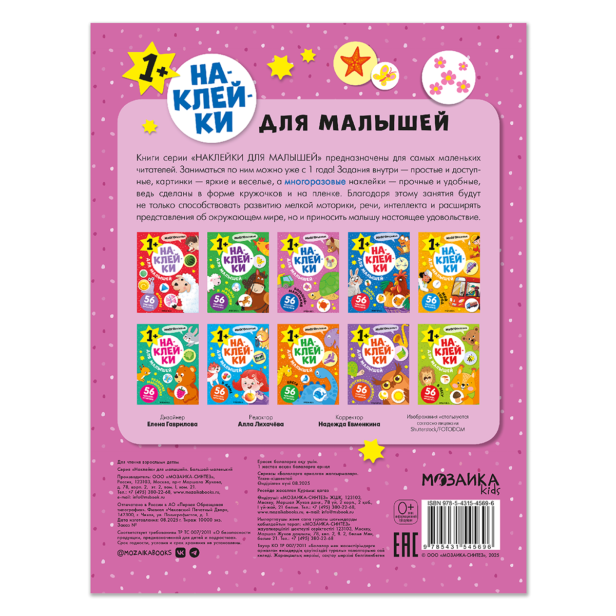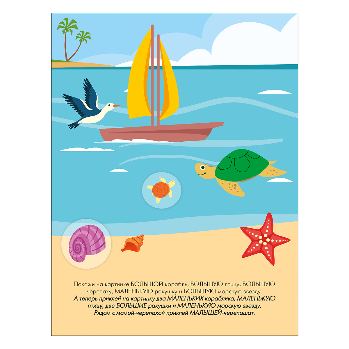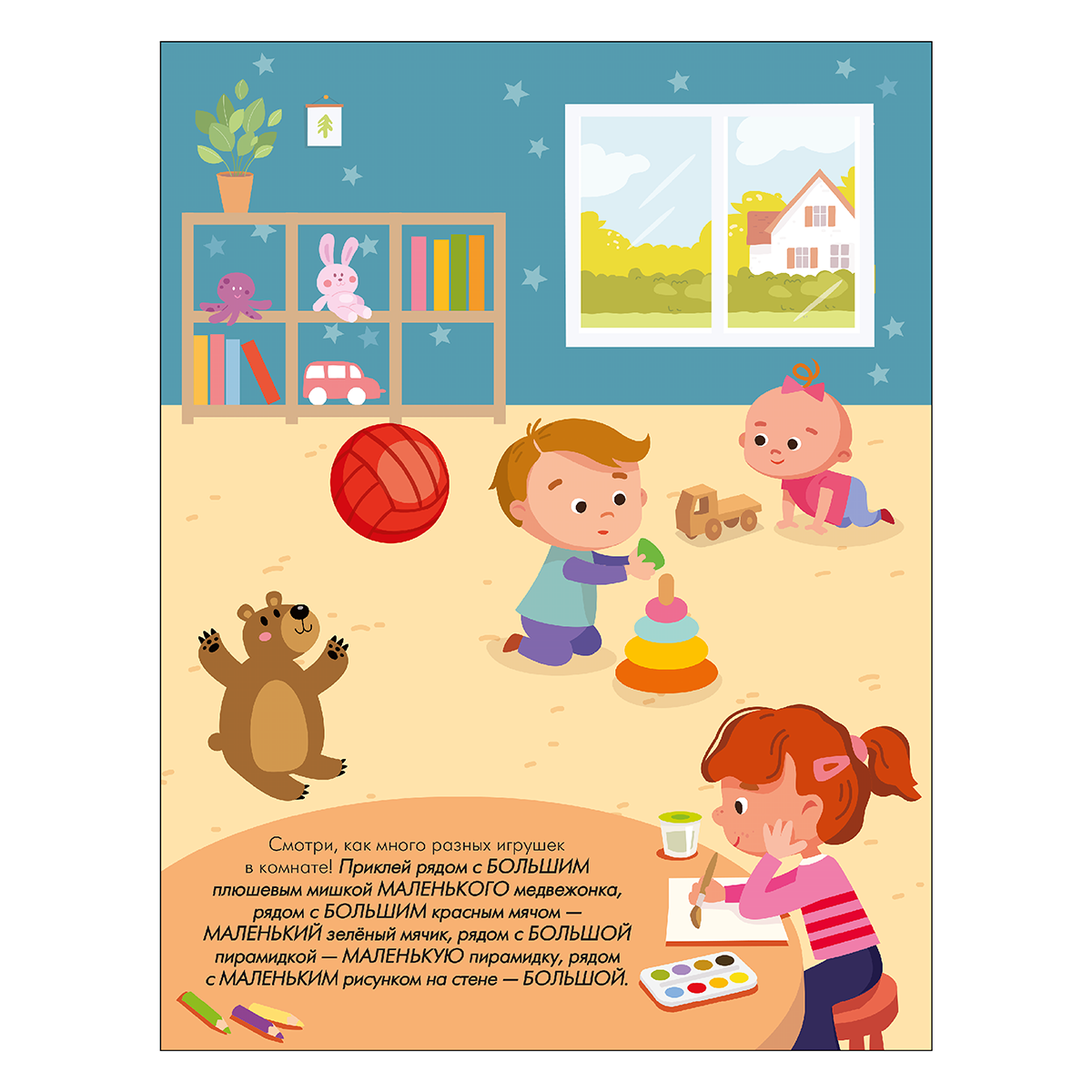 Большой-маленький [Наклейки для малышей], книжки с наклейками Книга «Большой-маленький» из серии «Наклейки для малышей» — настоящая находка для родителей малышей от 1 года! Прочные многоразовые наклейки-кружочки легко клеятся. Простые задания направлены на развитие логического и пространственного мышления, яркие картинки привлекают внимание. Учитесь с радостью!