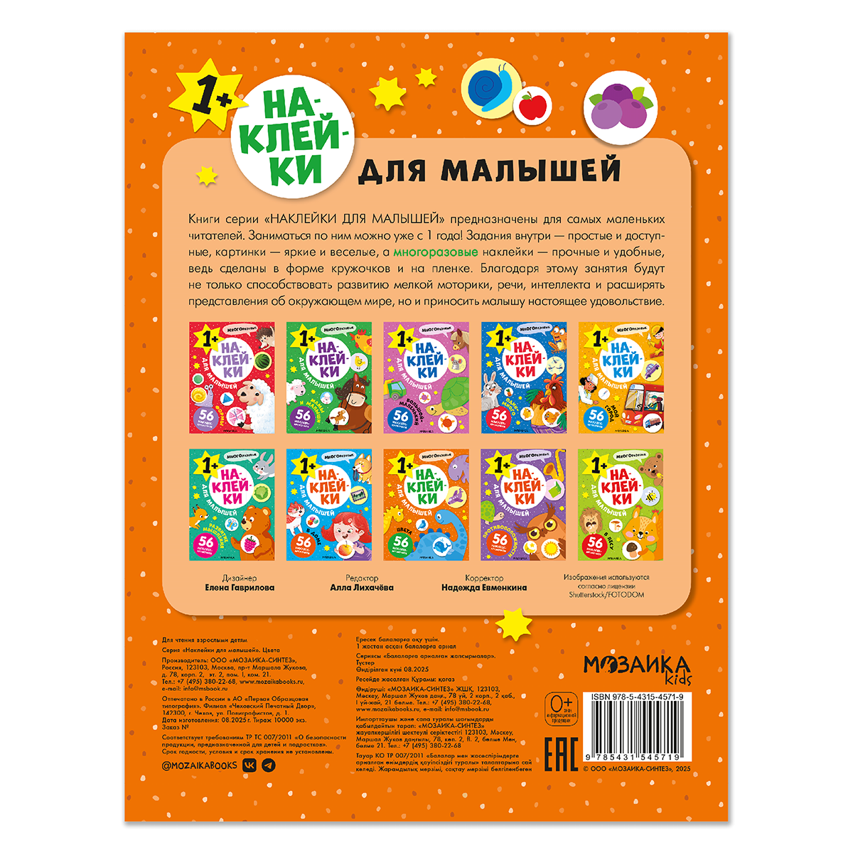 Цвета [Наклейки для малышей], книжки с наклейками Книга «Цвета» из серии «Наклейки для малышей» — настоящая находка для родителей малышей от 1 года! Прочные многоразовые наклейки-кружочки легко клеятся, не оставляя следов. Простые задания направлены на изучение 9 базовых цветов, яркие картинки привлекают внимание. Учитесь с радостью!