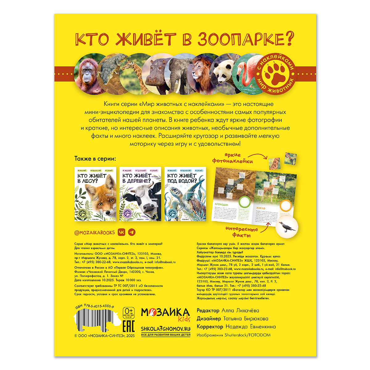 Кто живёт в зоопарке? [Мир животных с наклейками], книги с наклейками В книге «Кто живёт в зоопарке?» из серии «Мир животных с наклейками» ребенок познакомится с одними из самых известных животных, которые обитают в разных частях света. Внутри книги ждут яркие фотографии необычные факты и много наклеек. Расширяйте кругозор и развивайте мелкую моторику через игру!