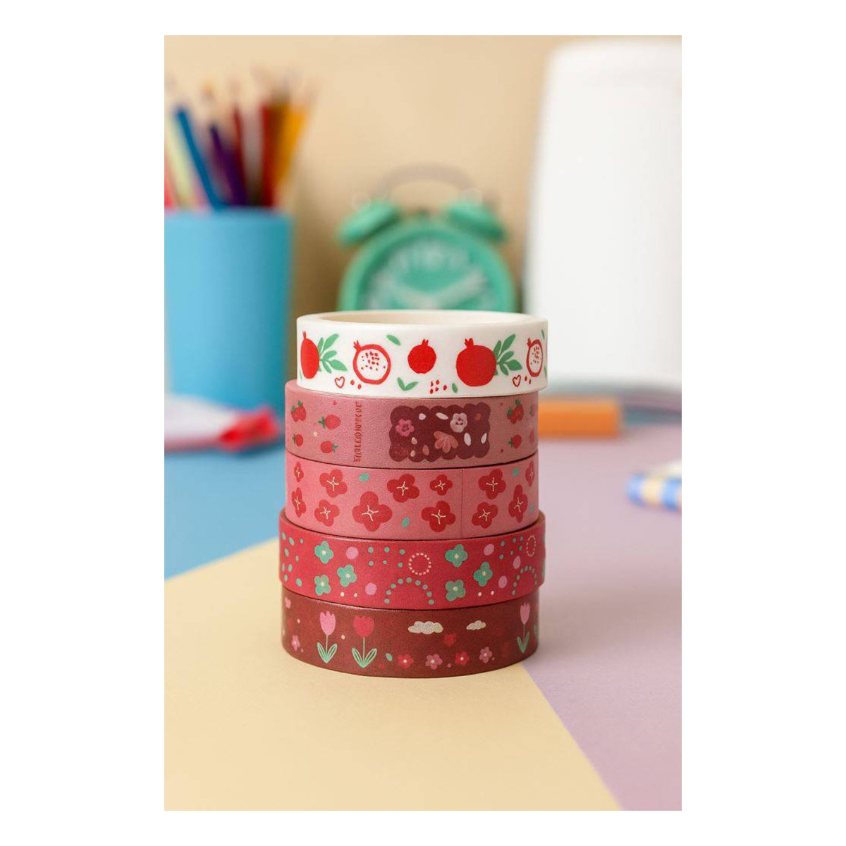 "ILIKEGIFT" Набор декоративного скотча 5шт в уп. 1 см х 2 м 5 шт. "Designer prints", red