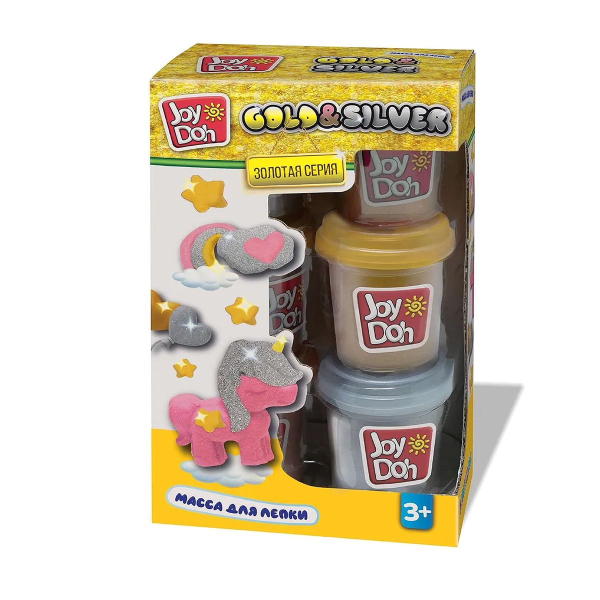 Масса для лепки Joy Doh, набор GOLD&SILVER - ЗОЛОТО И СЕРЕБРО, 6 баночек с тестом, [6 х 56 г.]Изготовлена из пищевых компонентов и безопасна для вашего ребенка.