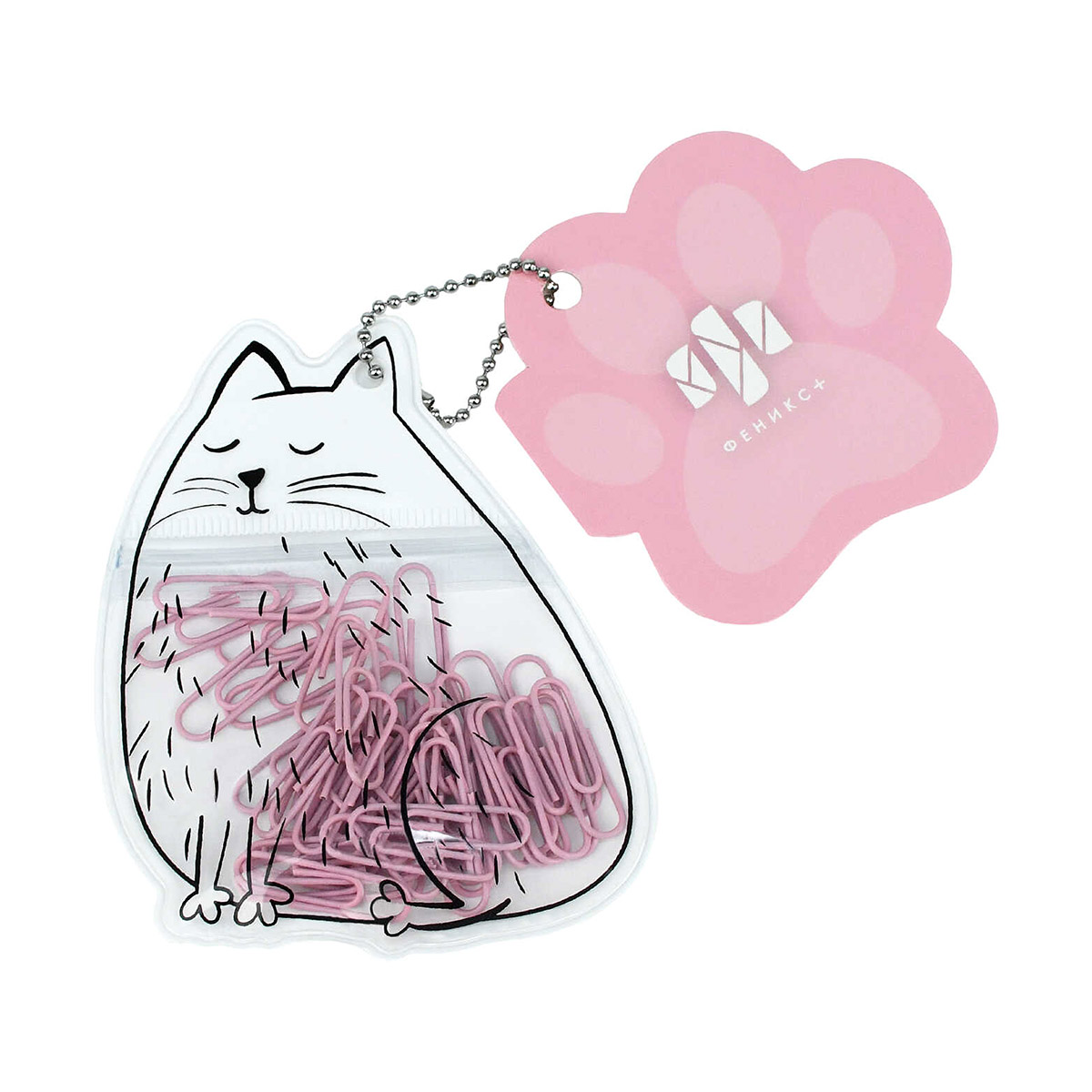 Феникс + Скрепки канцелярские БЕЛЫЙ КОТИК 71495 Фото 1.