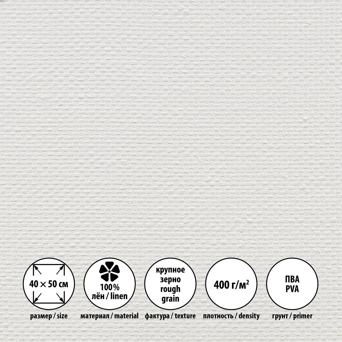 Холст грунтованный на подрамнике "NO NAME" "Ученический" УКХ-4050 100% лён 40 х 50 см 400 г/кв.м ученический крупнозернистый крупнозернистый