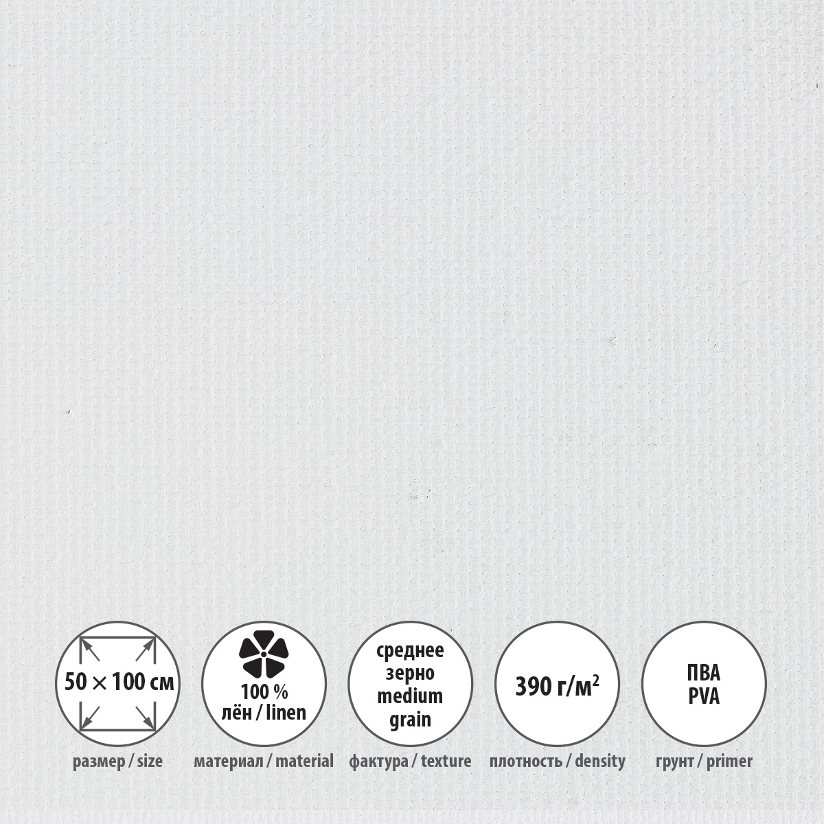 Холст грунтованный на подрамнике NO NAME Ученический УСХ-50100 100% лён 50 х 100 см 390 г/кв.м ученический среднезернистый среднезернистый Фото 3.