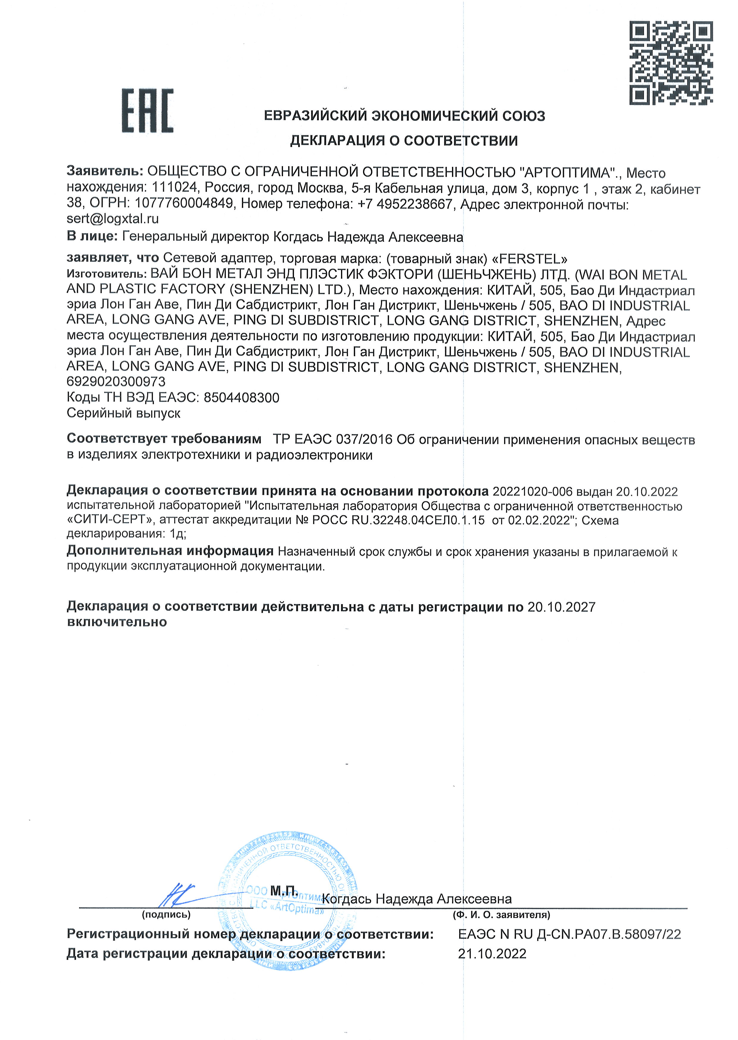 Сетевой адаптер FERSTEL FR-12 — надежное питание для луп и светильников