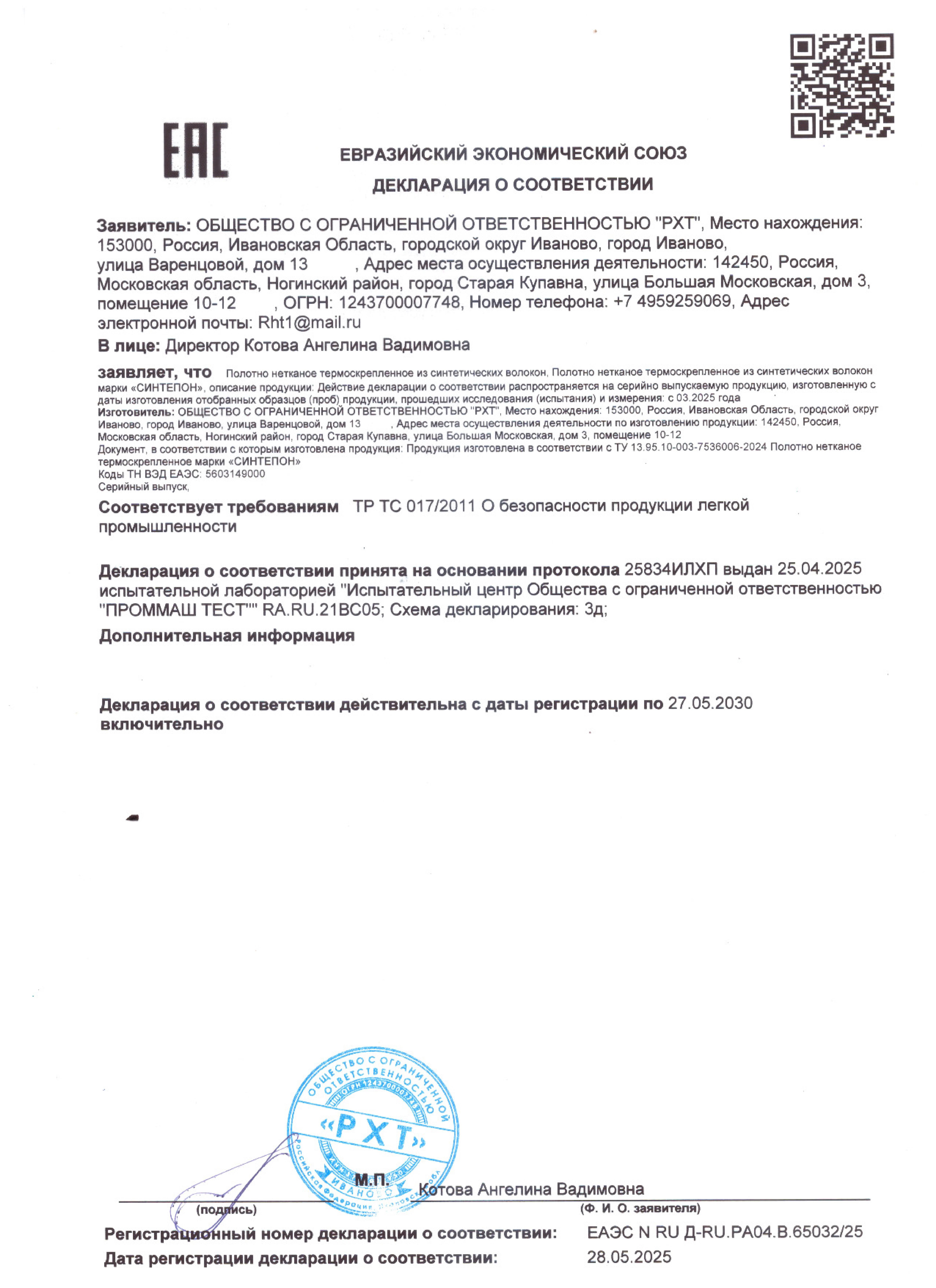 Сертификат или декларация соответствия
