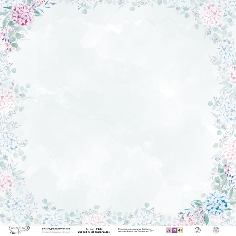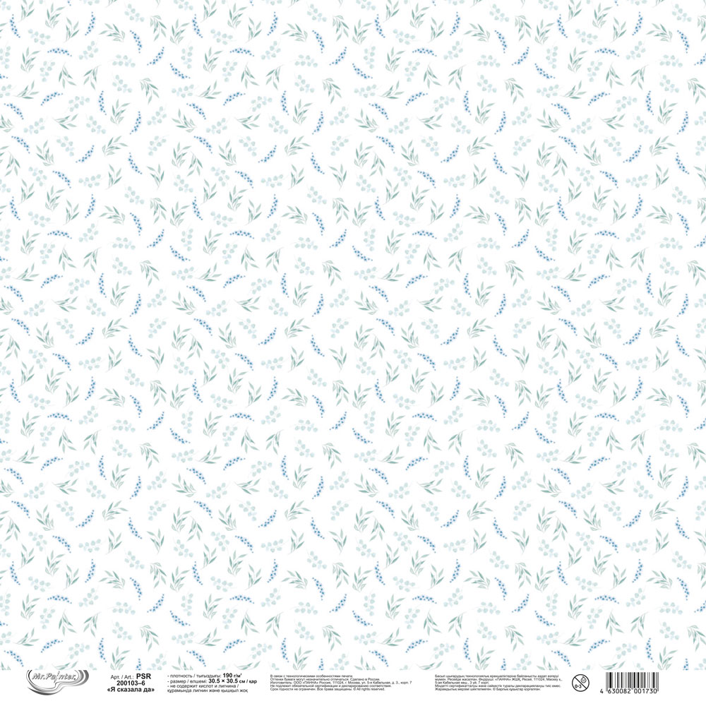 Бумага для скрапбукинга "Mr.Painter" PSR 200103 "Я сказала да" 190 г/кв.м 30.5 x 30.5 см 6