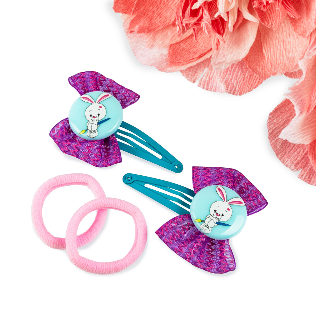 Набор аксессуаров для волос в одной цветовой гамме: 2 мягкие резиночки для волос и 2 заколки клик-клак . Они идеально подходят для тонких косичек и хвостиков, помогут в создании нежных образов для маленькой модницы.