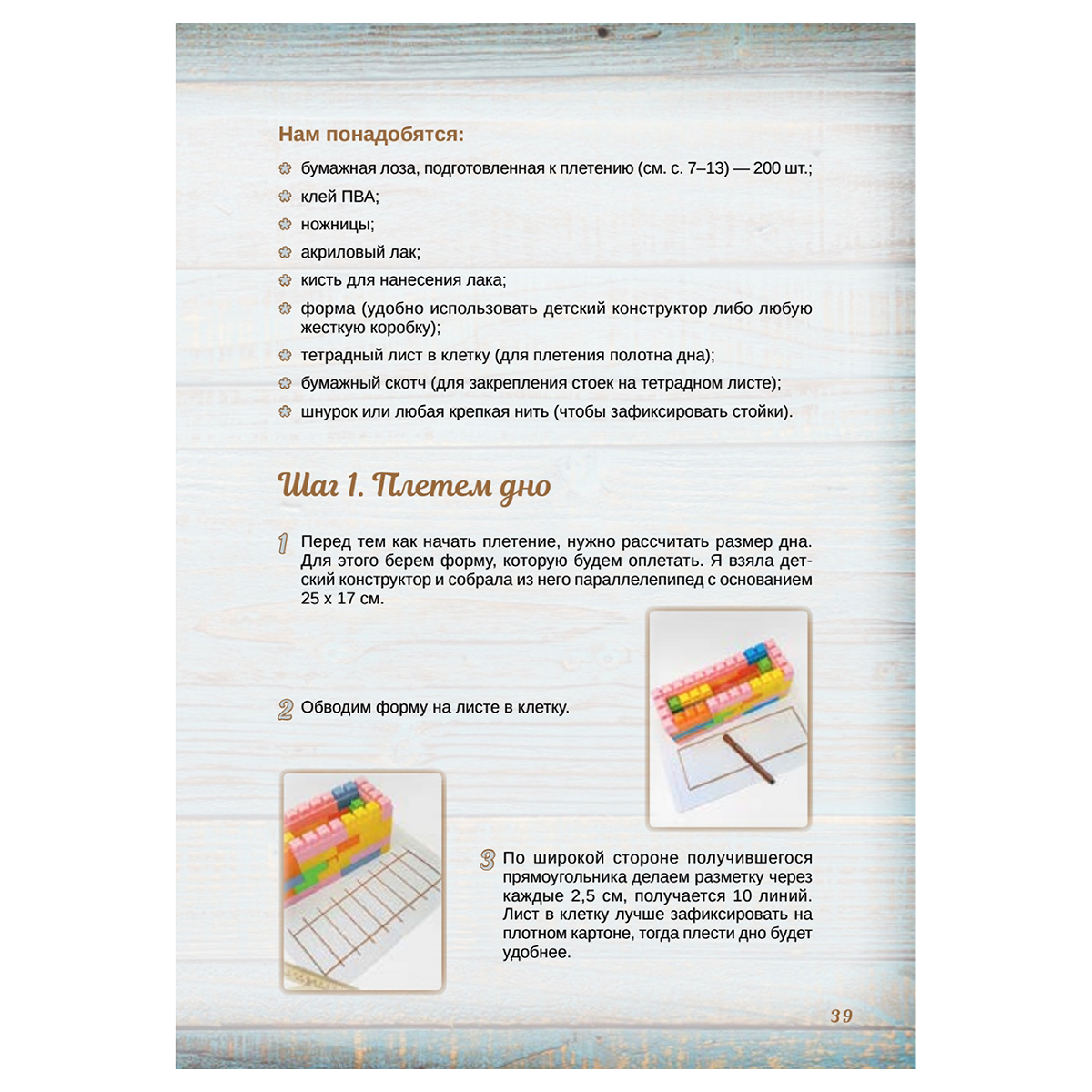 Плетение из бумажной лозы — один из ведущих трендов в рукоделии. Опытный мастер Татьяна Юрова создала для этой книги 3 пошаговых мастер-класса. Благодаря четким инструкциям и наглядным фотографиям вы научитесь плести несколько корзин и изящную сумочку.