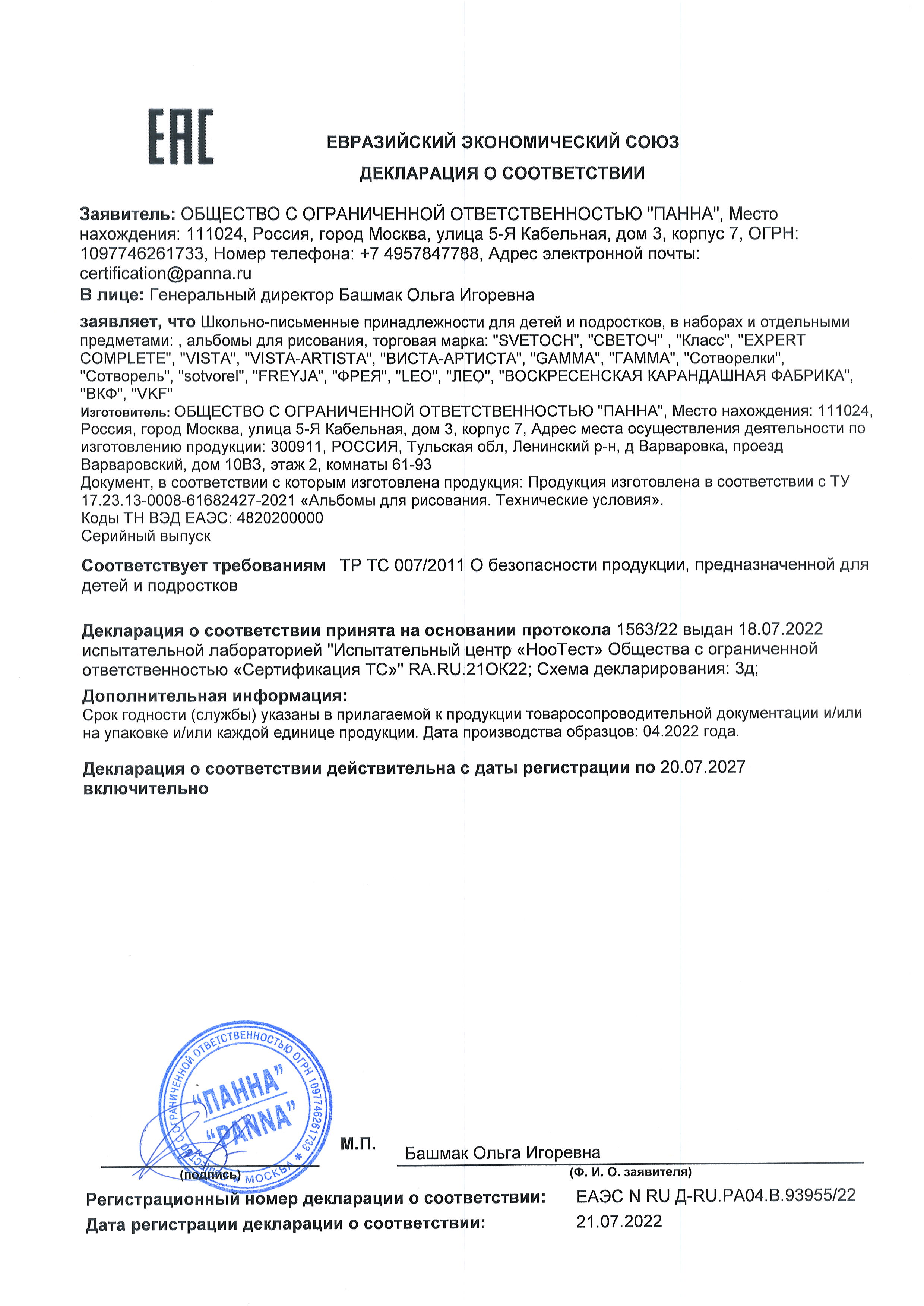 Сертификат или декларация соответствия