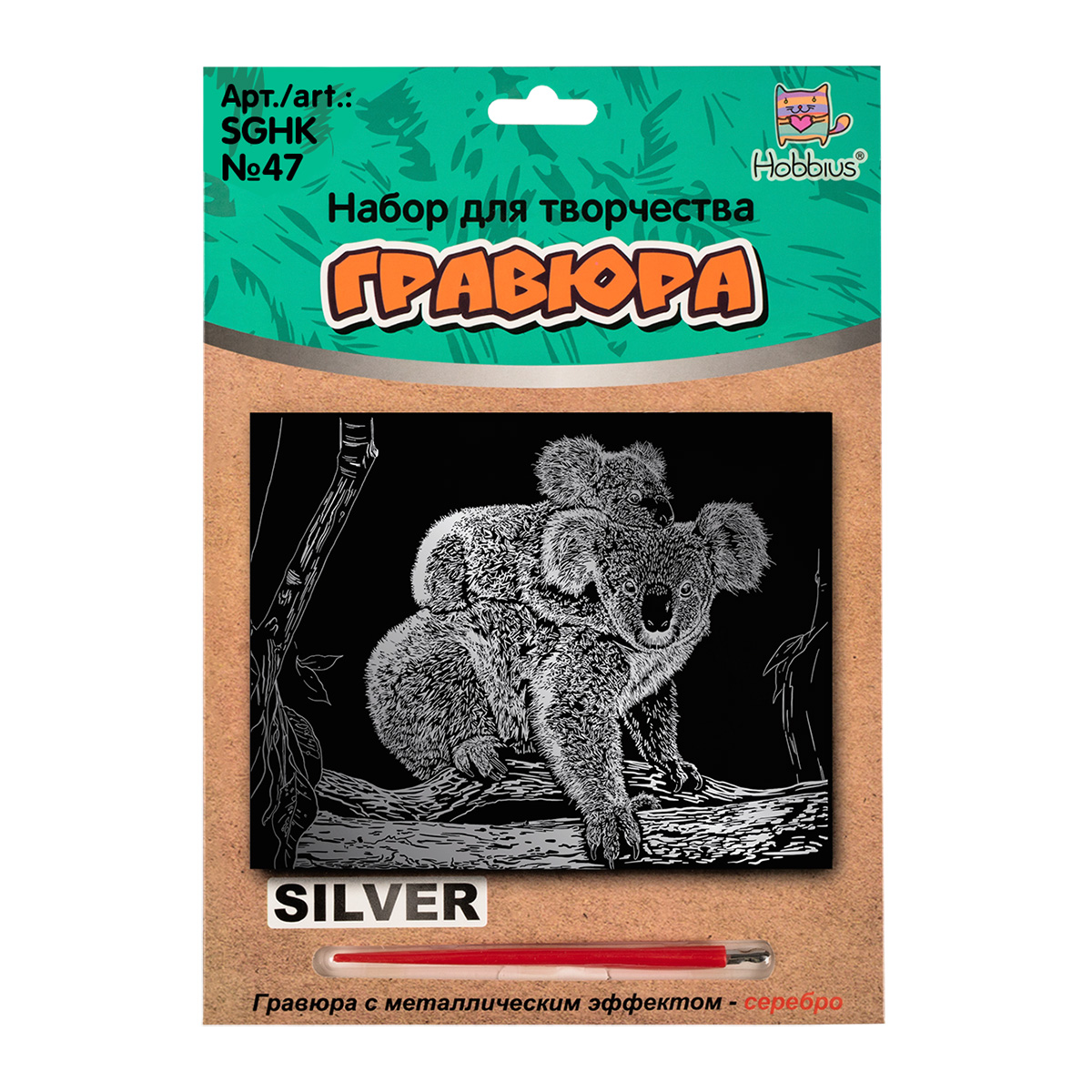 Hobbius SGHK Набор для творчества Гравюра 20 x 25.5 см №47 Коалы (серебро) Фото 1.