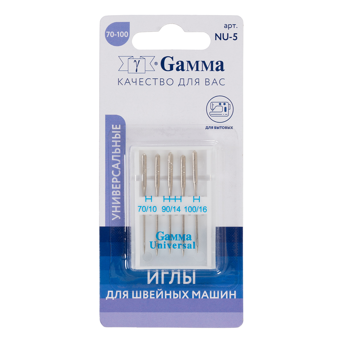 Иглы универсальные "Gamma" NU-5 №70-100 5 шт в блистере.