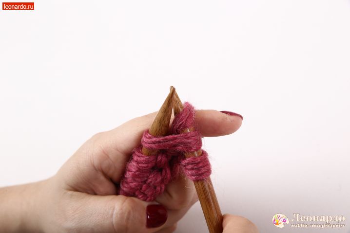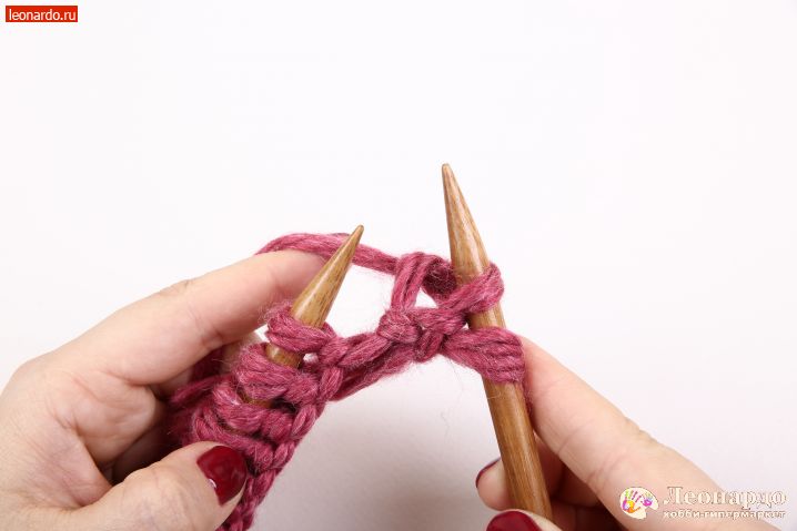1. Введите правую (рабочую спицу) в петлю снизу вверх от себя.