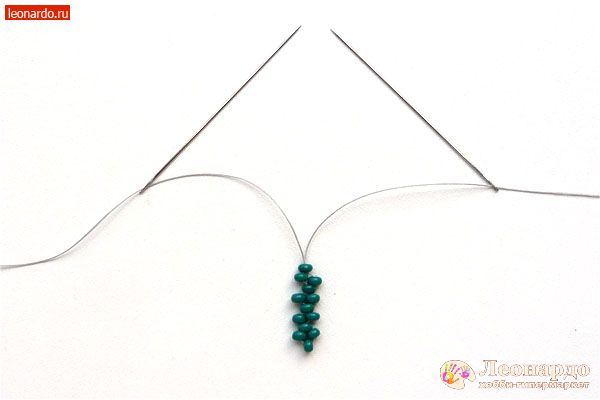5. Вводим левую иглу в 6-ю бисерину снизу.