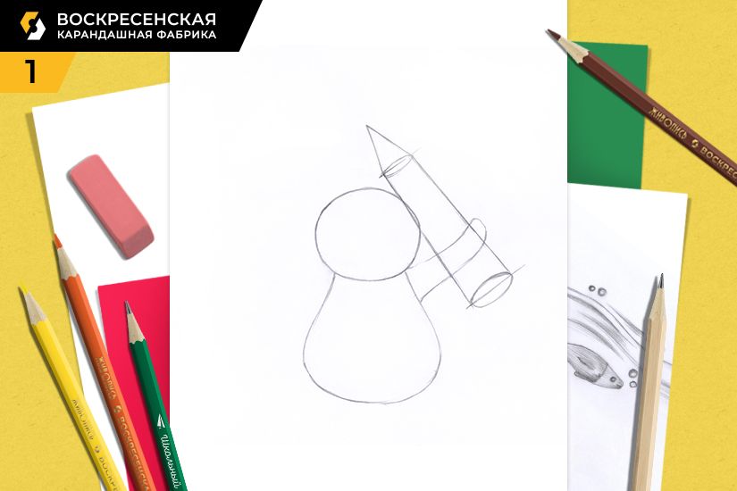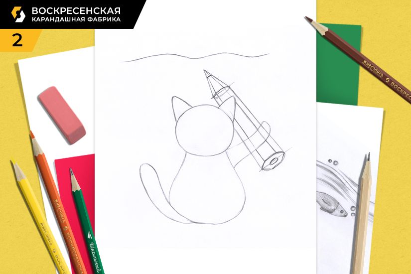 1. Намечаем расположение котика и карандаша.