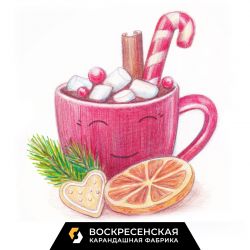 Предлагаем вам вместе с карандашами ВКФ нарисовать такой яркий рисунок чашки с какао и окунуться в атмосферу праздника!