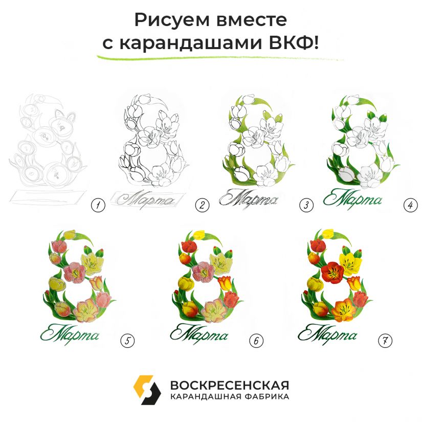 Нарисуйте весеннюю открытку вместе с пошаговым мастер классом от Воскресенской карандашной фабрики, подпишите ее теплыми пожеланиями и порадуйте своих близких.