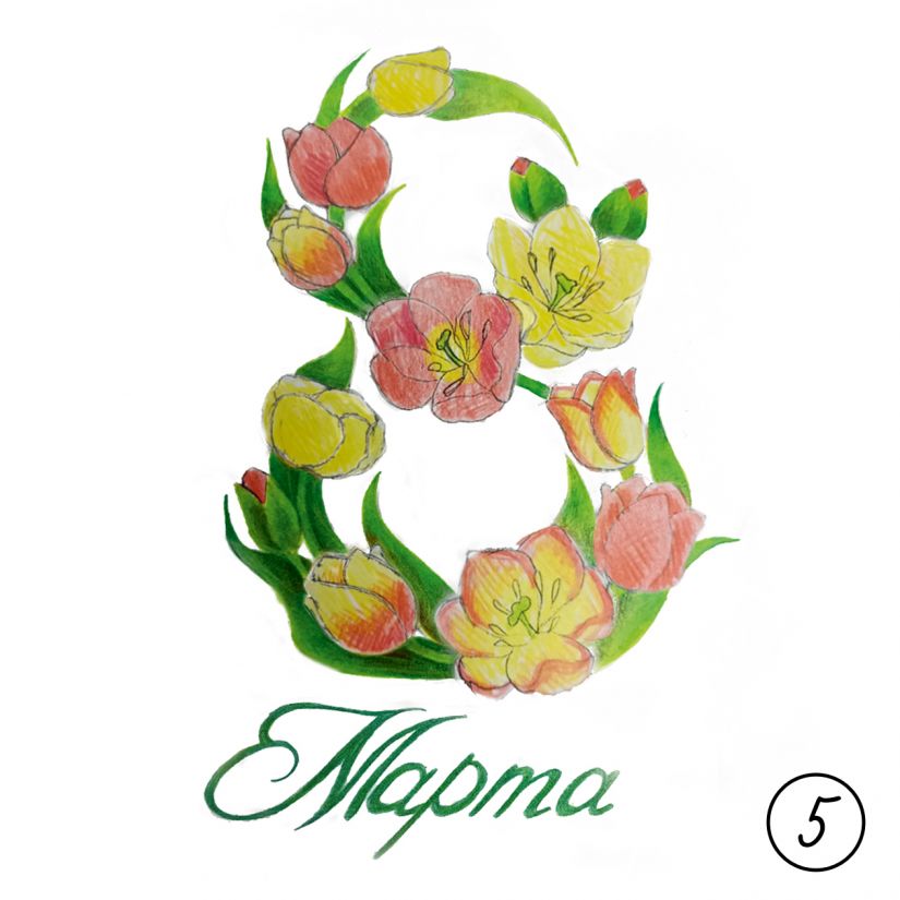 Яркая цветочная 8-ка с тюльпанами для мам и бабушек, сестер и подружек!