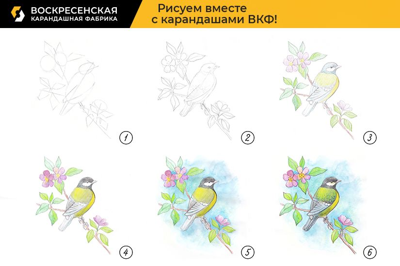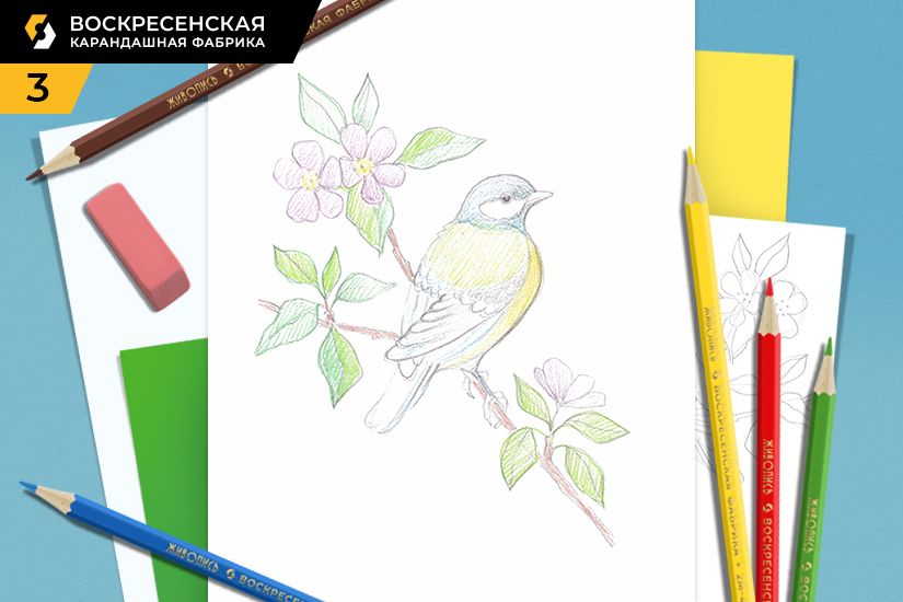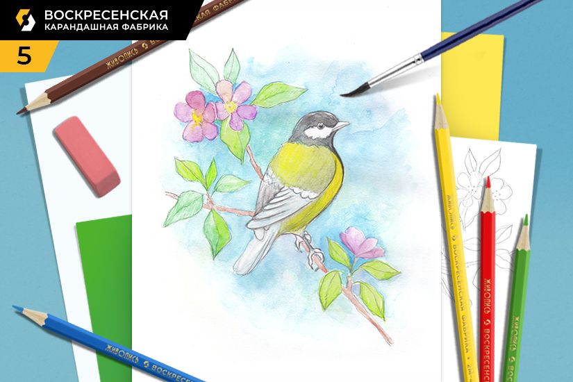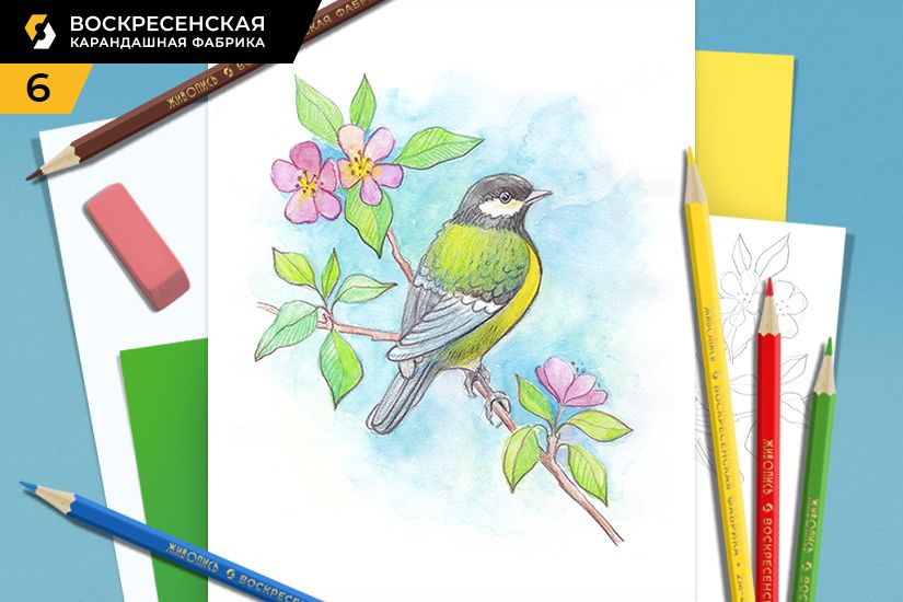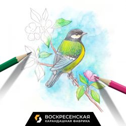 Предлагаем нарисовать атмосферную открытку с синичкой. Цветущая яблоня, нежная зелень и такая привлекательная синичка – все это вы сможете нарисовать по мастер-классу от Воскресенской карандашной фабрики. И пусть у вас будет солнечное весеннее настроение!