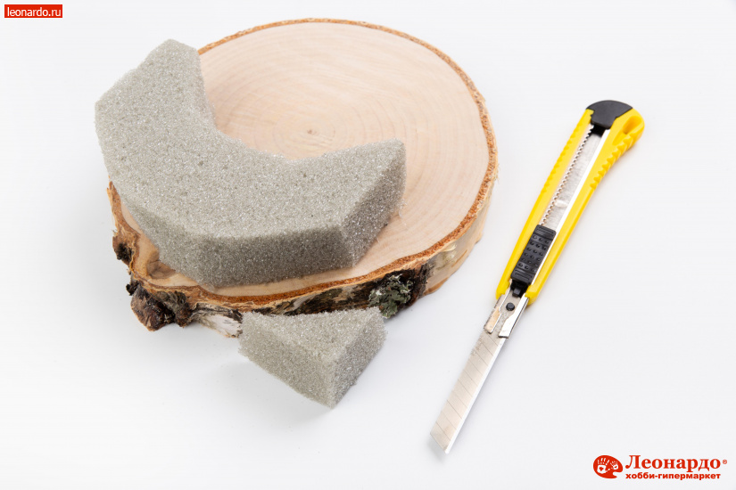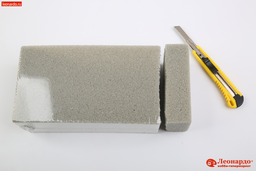 2. От бруска флористической пены макетным ножом отрезаем прямоугольник высотой шириной 2 см.