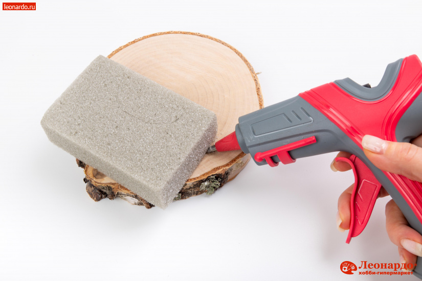 3. Приклеиваем его помощи клеевого пистолета к краю среза, расположив его горизонтально.
