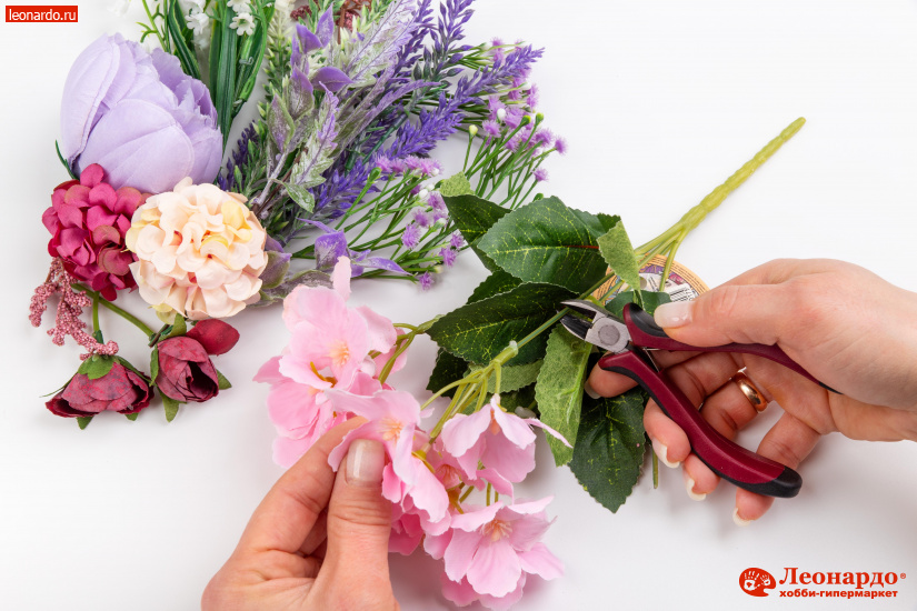 6. При помощи кусачек нарезаем соцветия и веточки с листьями. Оставляем длину стеблей около 5-6 см.